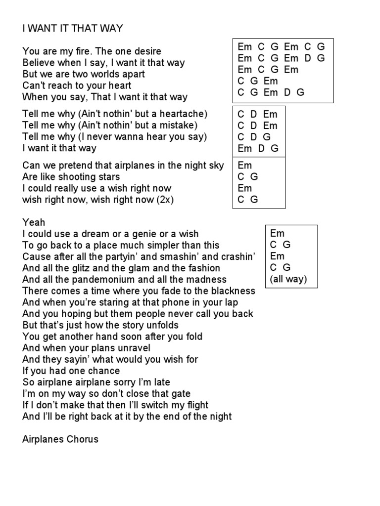 I Want It That Way/Airplanes/Replay Mashup with Guitar Chords
