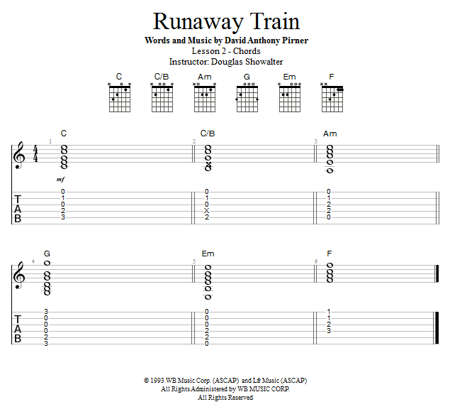 Runaway Train (Soul Asylum) Guitar Chord Chart | Runaway