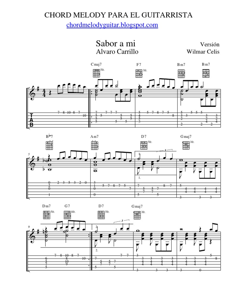 Sabor A Mi By Alvaro Carrillo - Single Sheet Music For