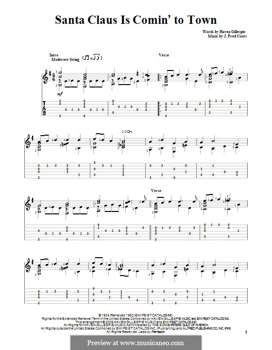 SANTA CLAUS IS COMING TO TOWN ♫ NOTES, TABS & CHORDS