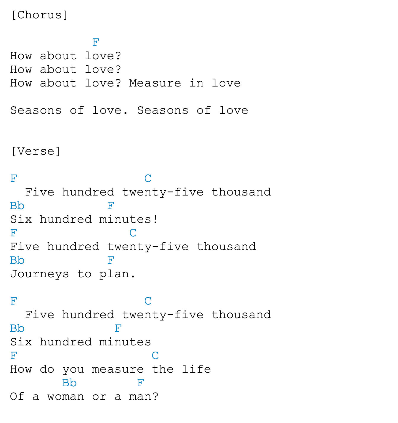 Seasons of Love Lyrics & Season of Love Guitar Chords