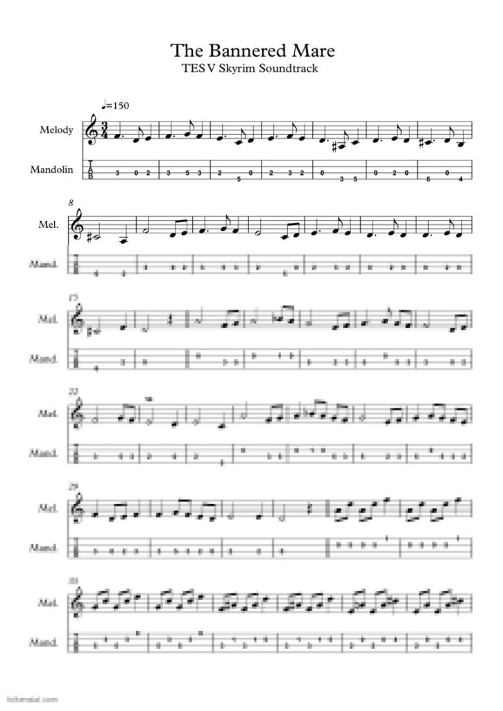TES V: Skyrim – The Bannered Mare – mandolin music sheet