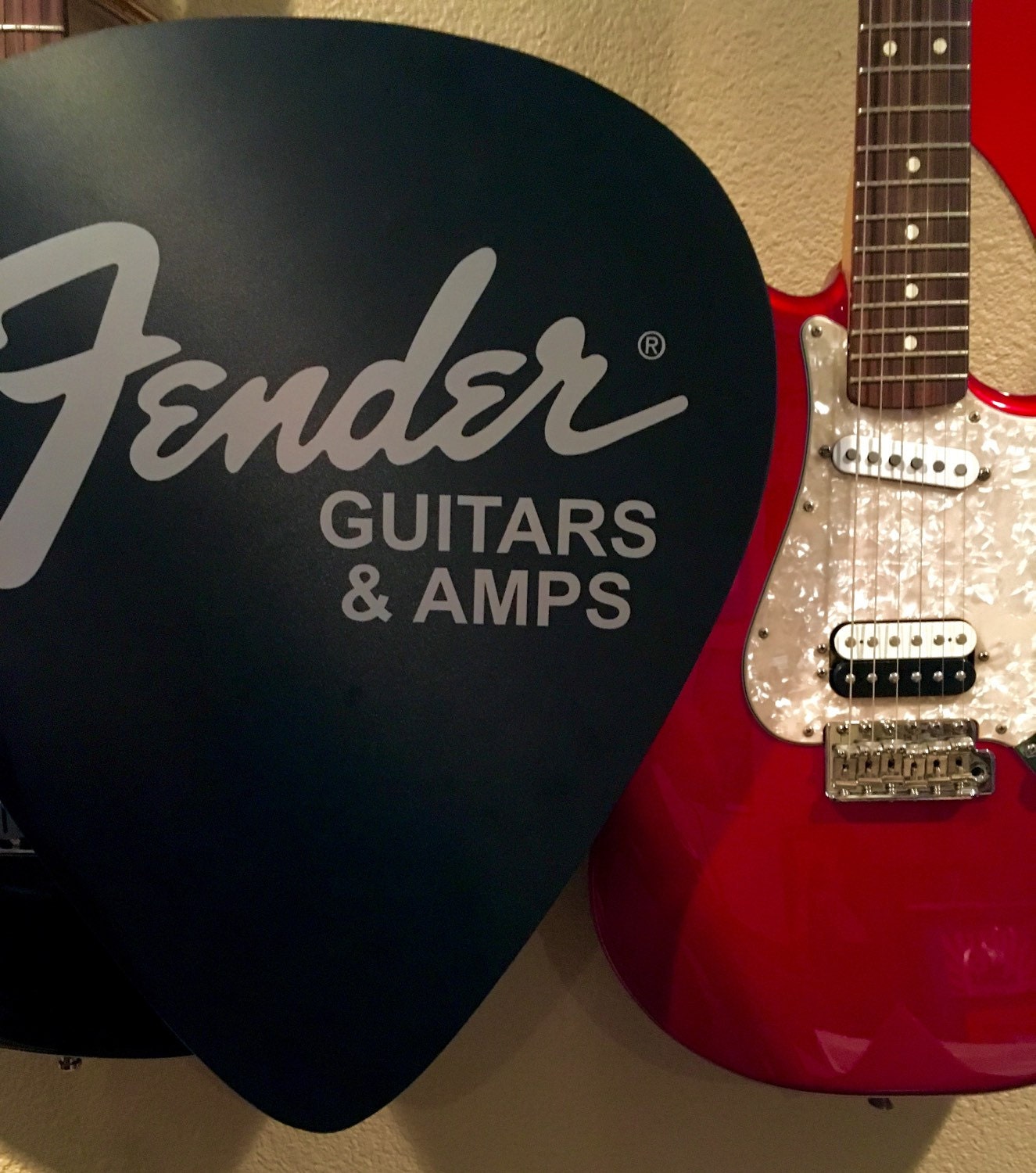 Vintage Huge Fender Guitars Amps Pick Shaped Sign / Huge 20