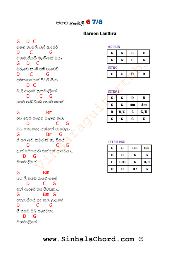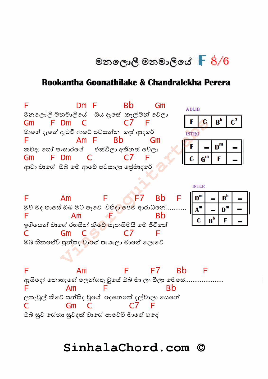 Manaloli Manamaliye Guitar Chords with Lyrics - Sinhala
