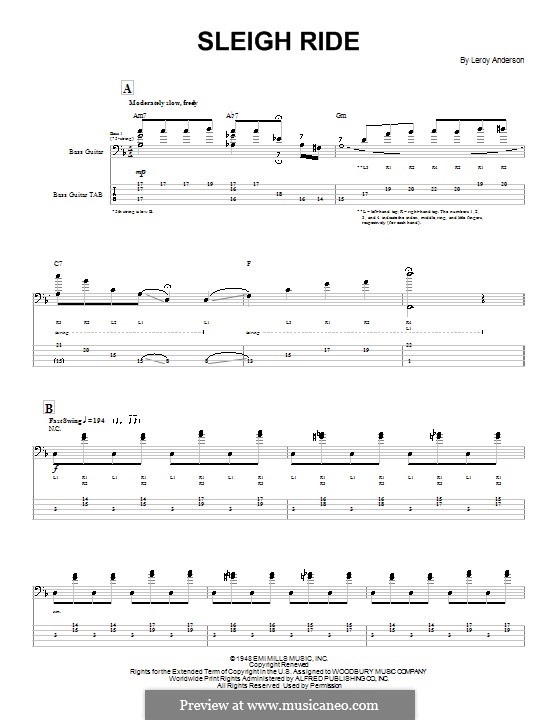 Sleigh Ride by Leroy Anderson - Bass Tab - Guitar Instructor