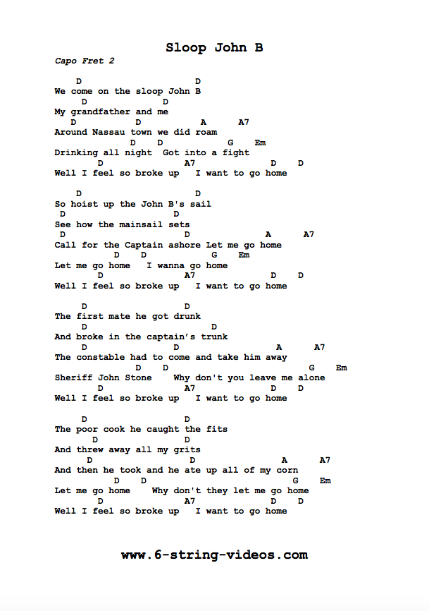 Sloop John B Chords, Guitar Tab, and Lyrics by Dwight