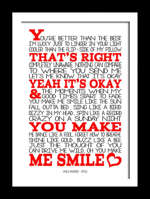 A3 Uncle Kracker Smile Print Typography song music lyrics for