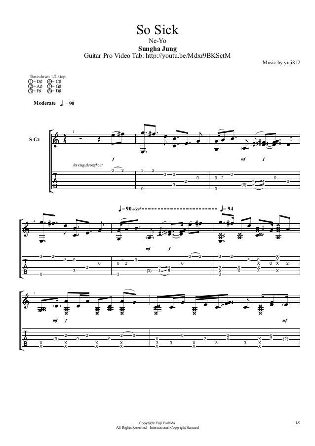 So Sick guitar pro tab by Sungha Jung @ musicnoteslib.com