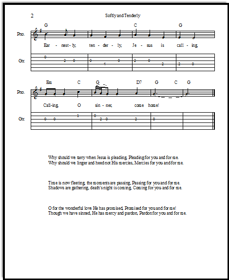 Softly and Tenderly – Sheet Music with Guitar Chords – One