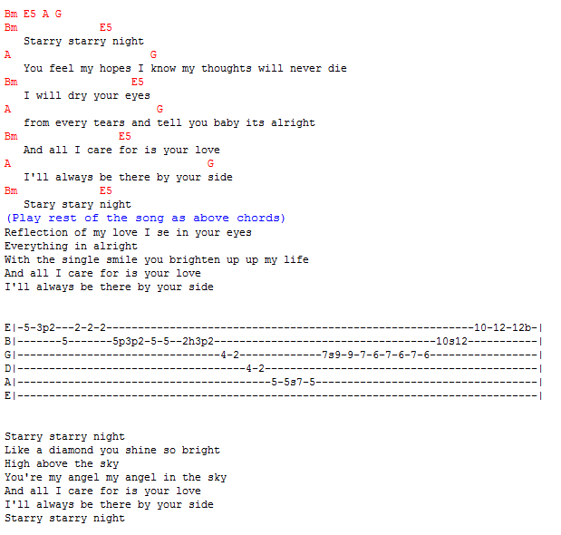 Relaxing acoustic guitar song - Starry Night guitar tabs