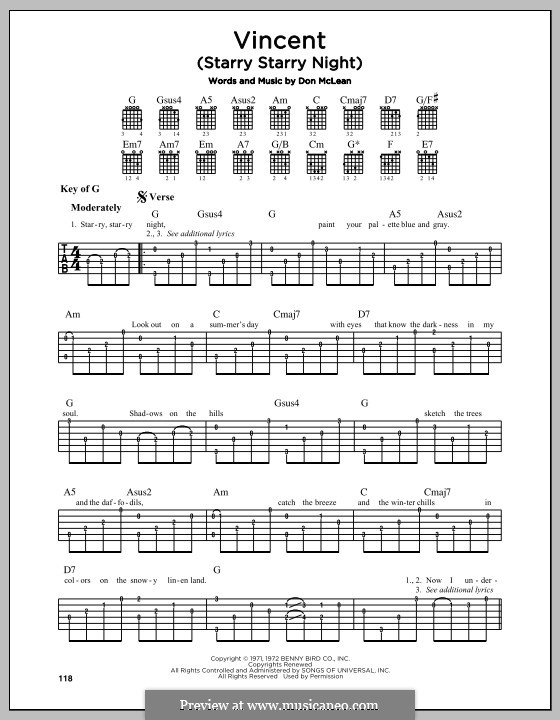 Vincent (Starry Starry Night) Guitar Chord Chart | Lyrics