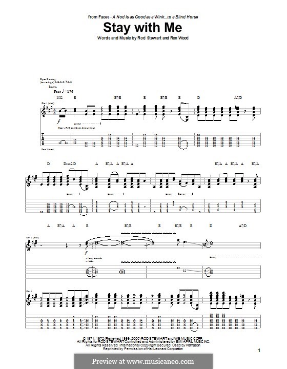 Stay With Me Sheet Music | Rod Stewart | Guitar Lead Sheet