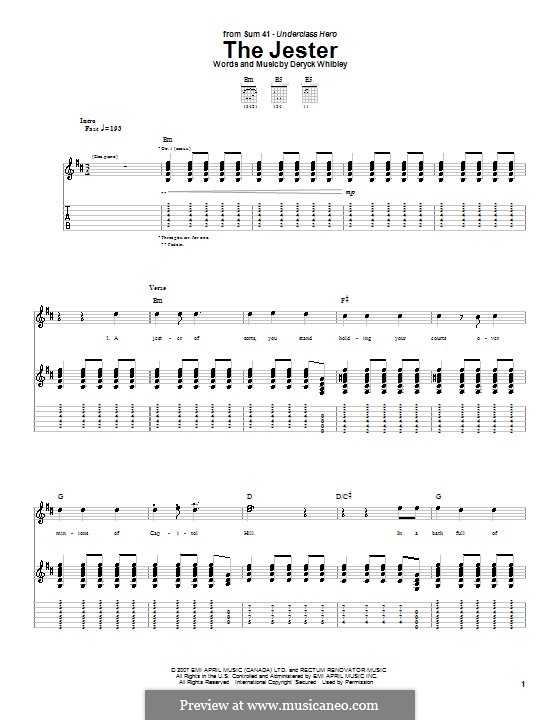 The Jester (Sum 41) by D. Whibley - sheet music on MusicaNeo
