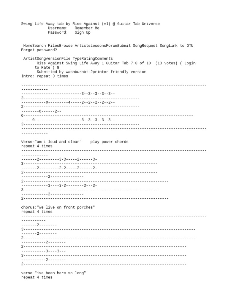 Swing Life Away - Rise Against - Free Guitar Tabs & Sheet