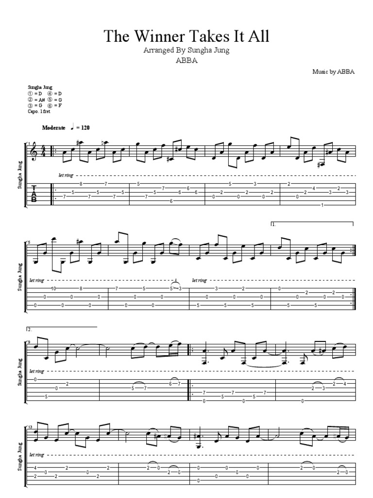 The Winner Takes It all guitar pro tab by Sungha Jung