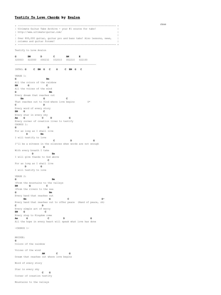 Testify To Love by Avalon - Guitar Chords/Lyrics - Guitar