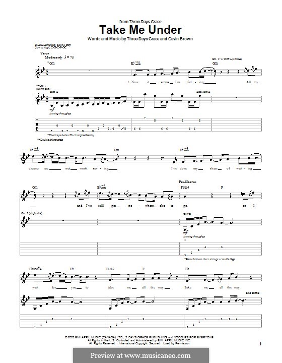 Take Me Under (Three Days Grace) by G. Brown - sheet music