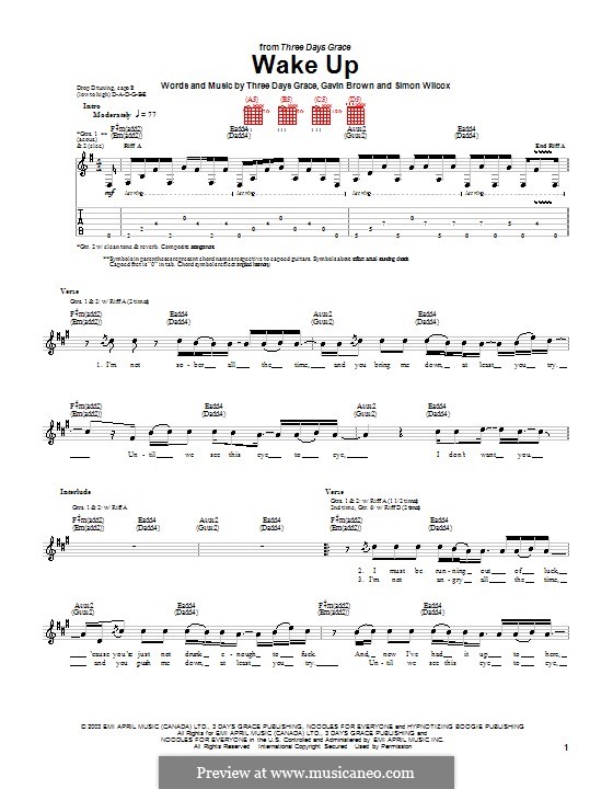 Wake Up (Three Days Grace) by G. Brown, S. Wilcox on MusicaNeo