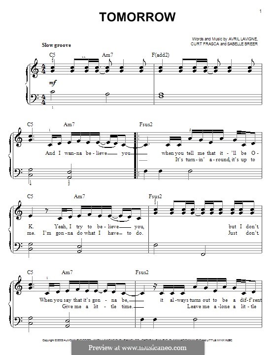 Tomorrow by A. Lavigne, C. Frasca, S. Breer - sheet music