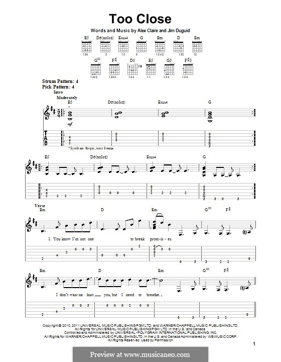 Too Close by J. Duguid, A. Clare - sheet music on MusicaNeo