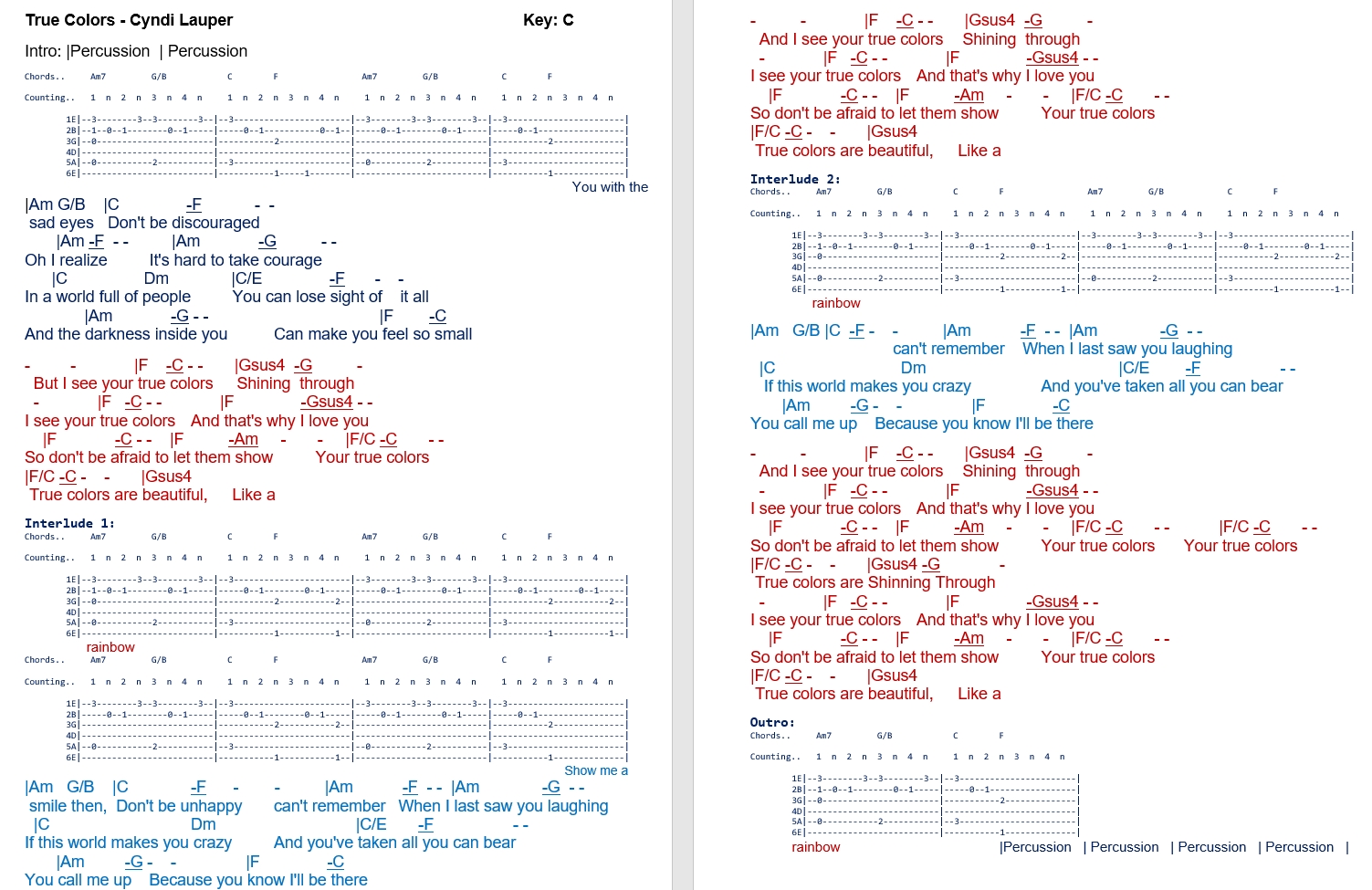 True Colors Guitar Chords Easy