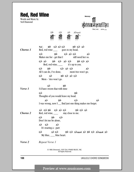 Red, Red Wine - Piano Chords/Lyrics | zZounds