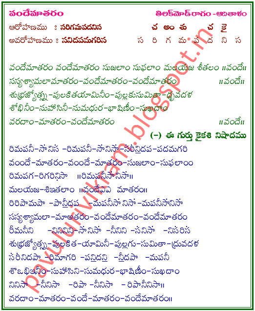 Vande Matharam Song Keyboard Notations ~ Pavuluri Vikam