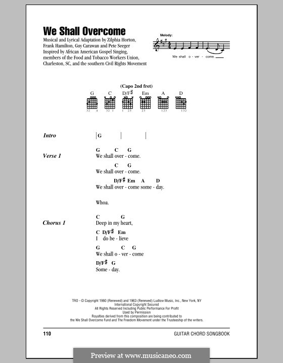 WE SHALL OVERCOME Sheet music - Guitar chords | Easy Sheet