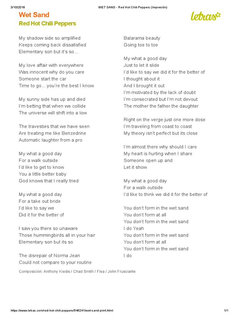 WET SAND - Red Hot Chili Peppers (Impresión) | Rock Music