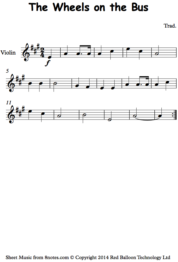 The Wheels on the Bus sheet music for Violin - 8notes.com