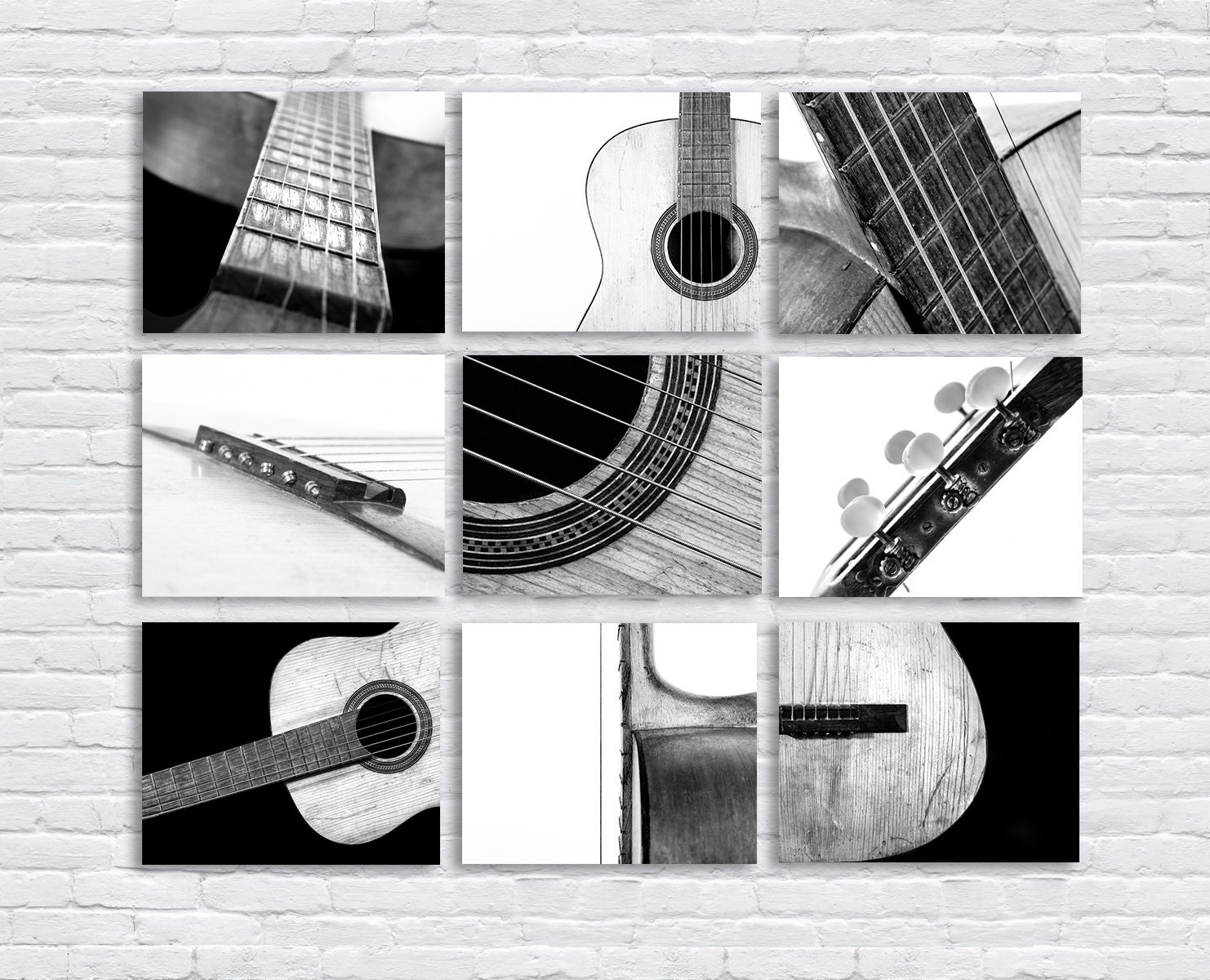 Black and White Vintage Acoustic Guitar Parts Set of Nine