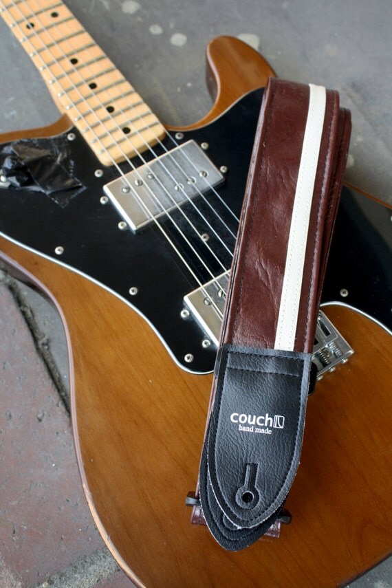 Vintage Dark Red & White Racing Stripe Guitar Strap Cadillac