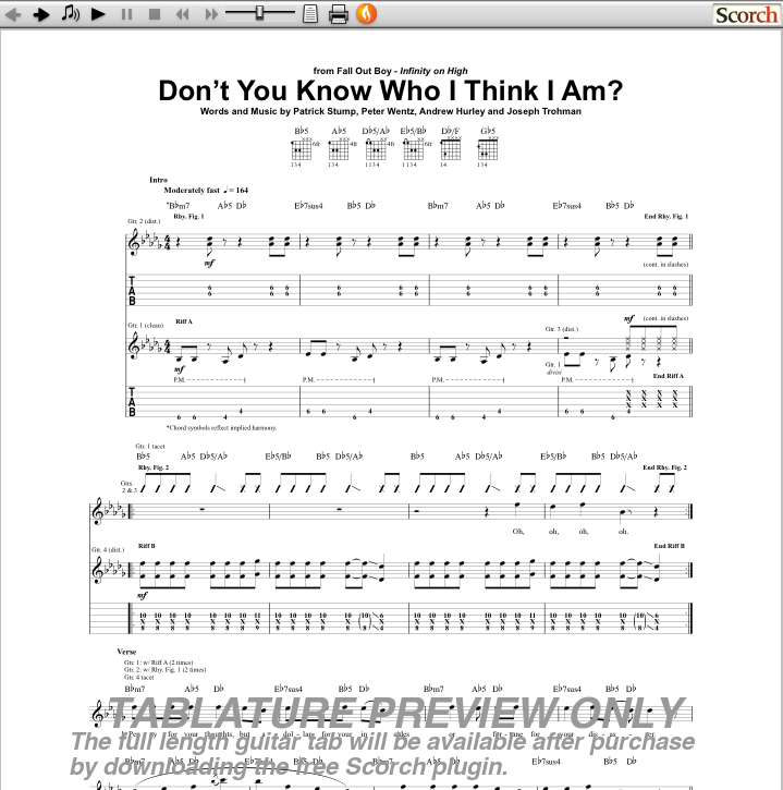 Who Am I (Guitar Tab) - Print Sheet Music Now