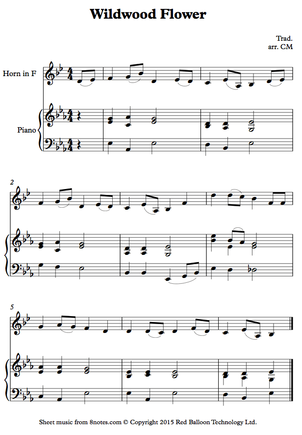 Wildwood Flower sheet music for French Horn - 8notes.com
