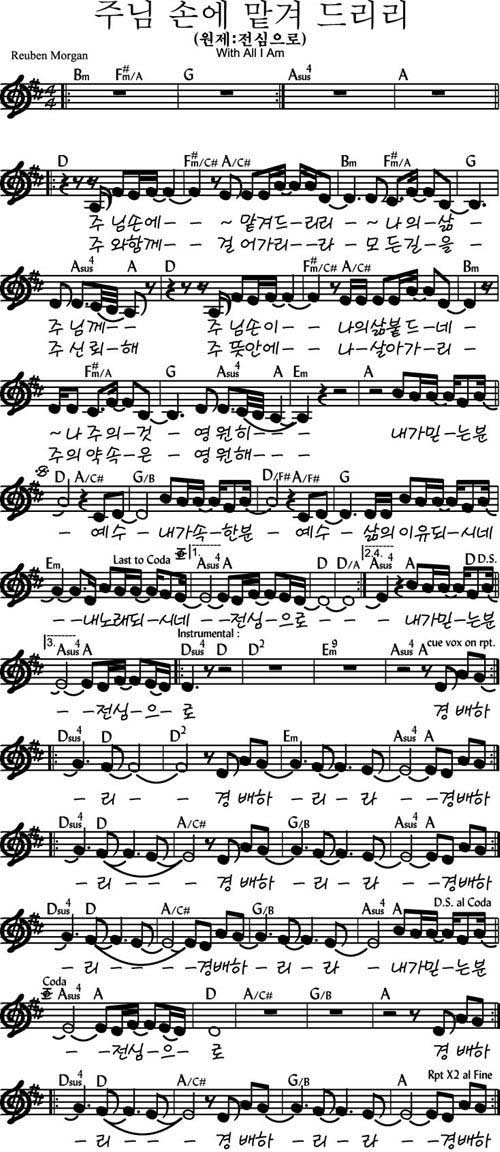 주님 손에 맡겨 드리리(전심으로, with all I am, D)