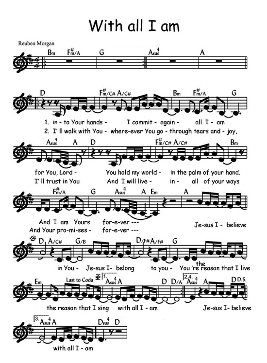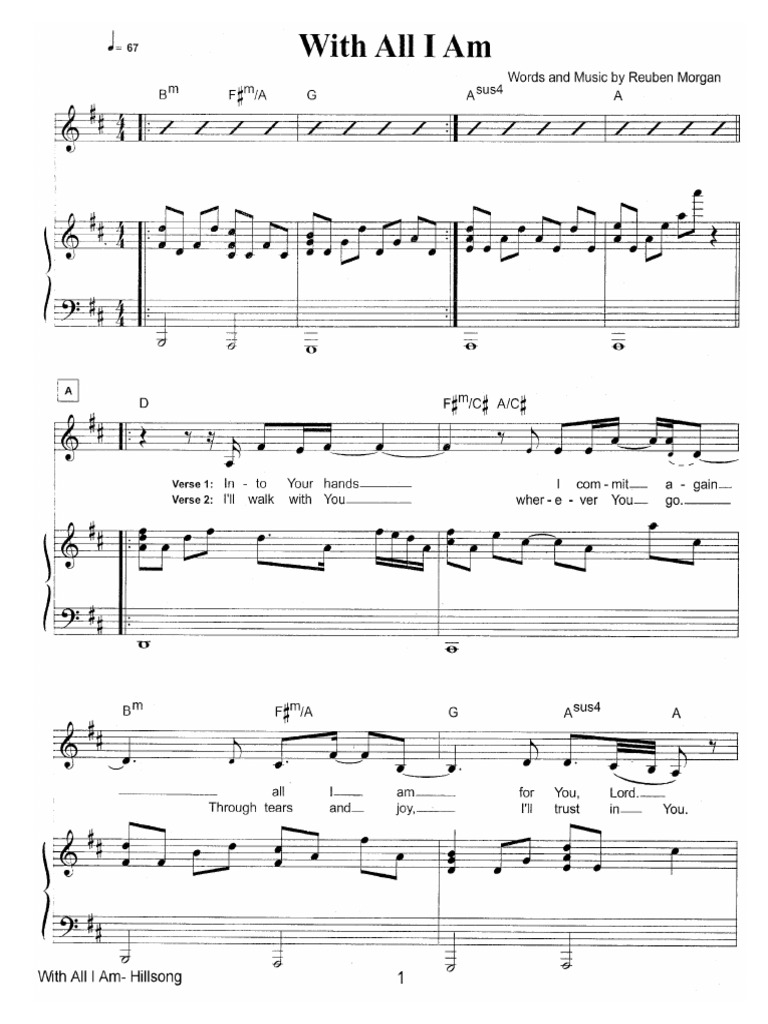 Hillsong "With All I Am" Sheet Music (Leadsheet) in D