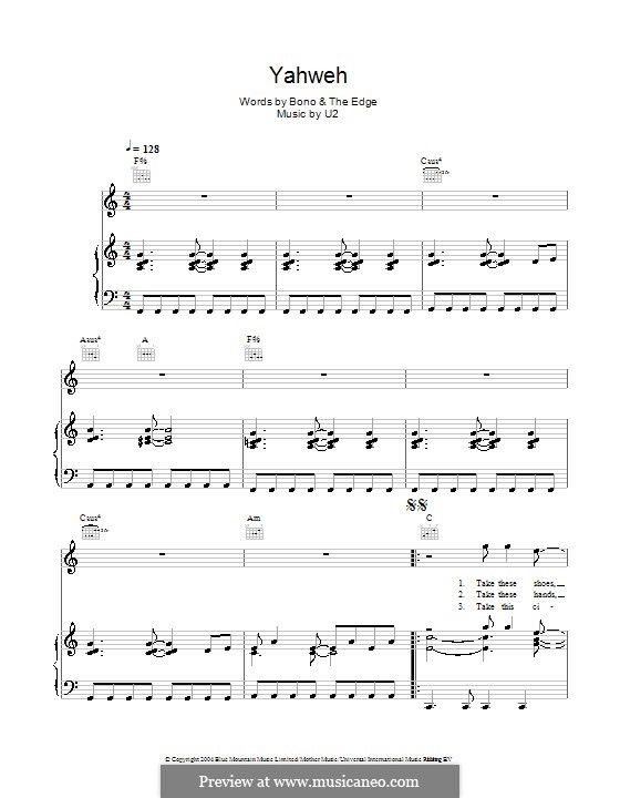 Yahweh by U2 - sheet music on MusicaNeo