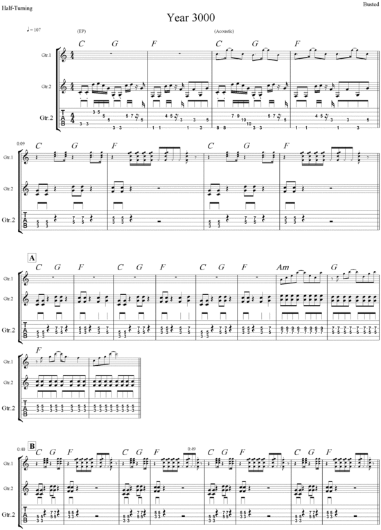 [쉬운 악보] Year 3000 - Busted (Guitar 02 Clean,Distortion 악보