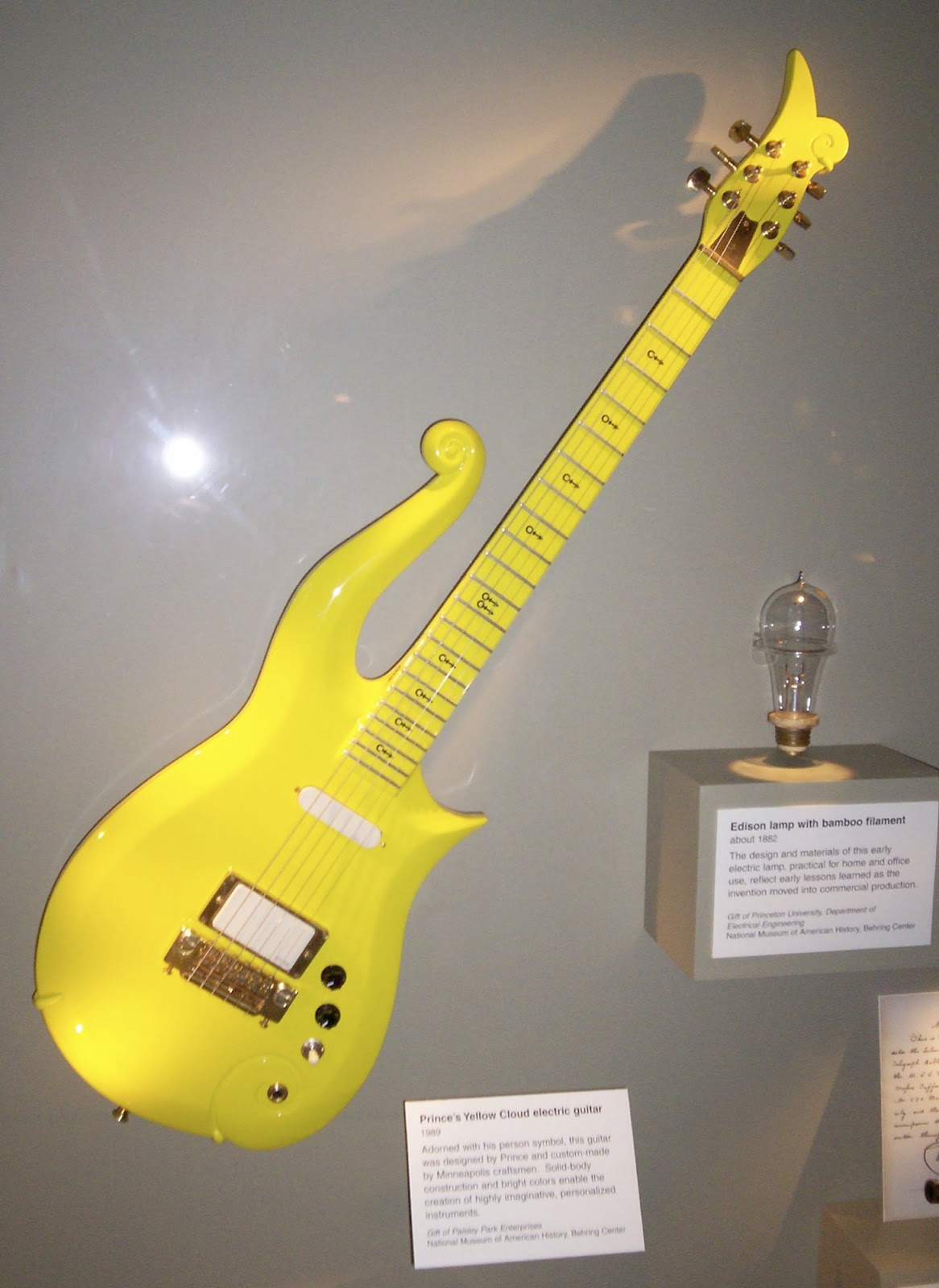 Prince’s bright yellow, uniquely shaped guitar up for