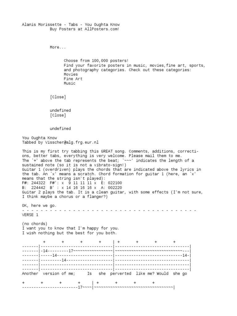 Alanis Morissette - Tabs - You Oughta Know | Song