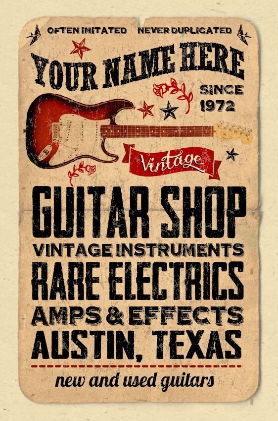 YOUR NAME on a guitar shop poster Personalized custom gift