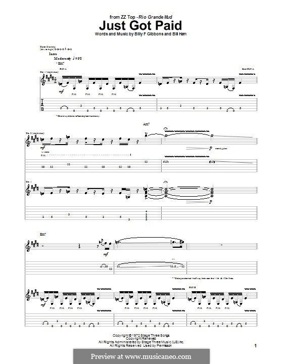 Just Got Paid (ZZ Top) by B. Ham, B.F. Gibbons - sheet